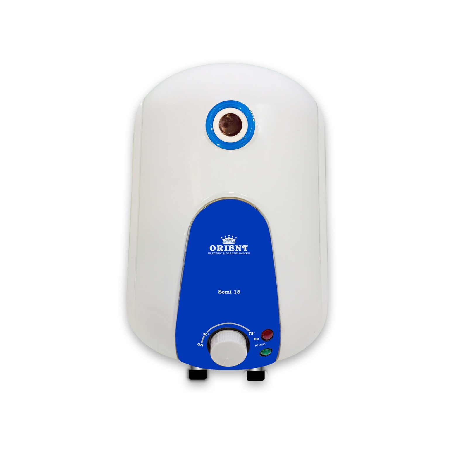 Experience reliable and efficient hot water with the OR-1120 [DIGITAL] Semi Instant Electric Geyser from Orient Appliances. Available in 12.5L and 20L capacities, this compact geyser is designed for modern households. Operating at 220V, it heats water quickly and provides comfort on demand. With an IPX4 waterproof rating and 1-year thermostat warranty, it ensures long-lasting performance. Its stylish white and blue design, coupled with compact dimensions (L: 14.75", W: 14.1", H: 20"), makes it a versatile fit for both small and large spaces.